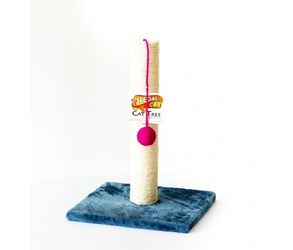 Занимателно драскало с топче. Състои се от квадратна дървена плоскост, облечена с мека плюшена дамаска, прът за острене на нокти, обвит в сезал и играчка от сезал на въженце.